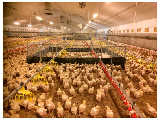 - Cravener, T.L.; Roush, W.B.; Mashaly, M.M. Broiler production under varying population densities. Poult. Sci. 1992, 71, 427–433. [Google Scholar] [CrossRef]