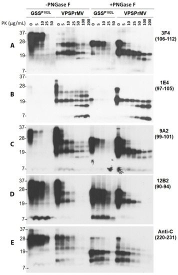 2.2. Two Groups of PrPres Fragments Are Generated upon PK-Treatment of PrPSc