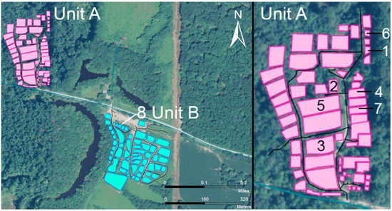 Schematic map of the rescue center, which was divided in two epidemiologic units A/Front (in pink) and B/Field (in turquoise). Inset has the order of the seven cases within unit A. Only one CDV-confirmed case was registered in Unit B.