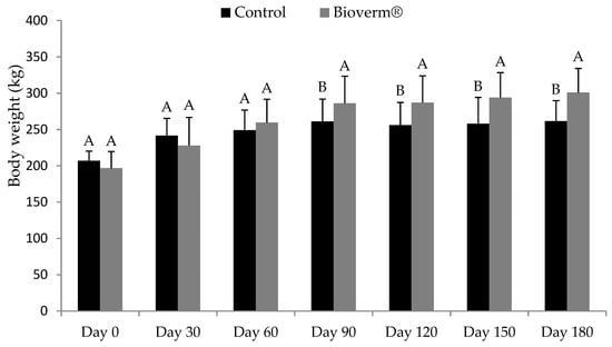 de Oliveira LdSSCB, Dias FGS, Melo ALT, de Carvalho LM, Silva EN, Araújo JVd. Bioverm® in the Control of Nematodes in Beef Cattle Raised in the Central-West Region of Brazil. Pathogens. 2021; 10(5):548. https://doi.org/10.3390/pathogens10050548