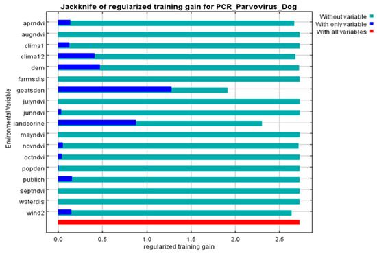 Maximum entropy modeling (MaxEnt software ver. 3.3.3) [27] was used to predict the appropriate ecological niches of positive CPV-2 DNA dogs. MaxEnt method requires presence-only data, utilizes both continuous and categorical data and includes efficient deterministic algorithms and mathematical definitions [27]. CPV-2 positive dogs were used as occurrence points for the ENM procedure. The goodness of fit of the model predictions was evaluated by the mean area under the curve (AUC) of the receiver operating characteristic (ROC) curve by giving an estimation between 0 and 1 for the probability of virus presence. Jackknife test option was used to eliminate the number of environmental variables to those that exhibited a substantial influence on the model.