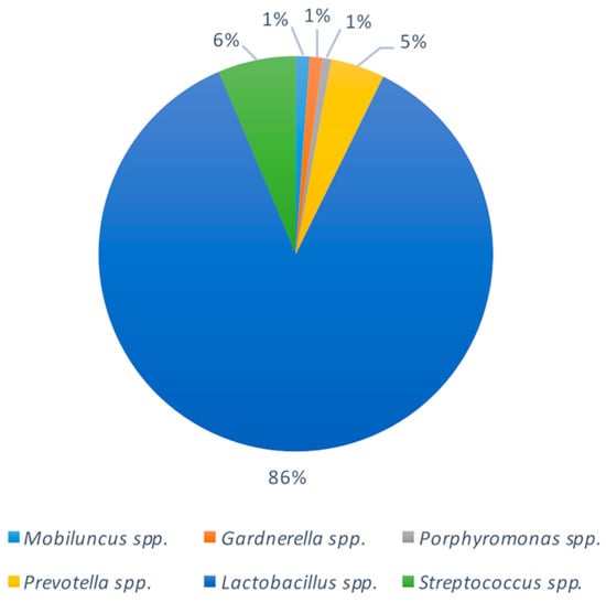 Predominant bacterial communities of vaginal swabs from pregnant women. Results were obtained by NGS. Data are represented as mean relative abundances.