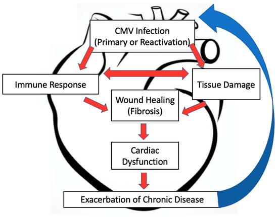 - Bonavita, C.M.; White, T.M.; Francis, J.; Cardin, R.D. Heart Dysfunction Following Long-Term Murine Cytomegalovirus Infection: Fibrosis, Hypertrophy, and Tachycardia. Viral Immunol. 2020, 33, 237–245. [Google Scholar] [CrossRef]