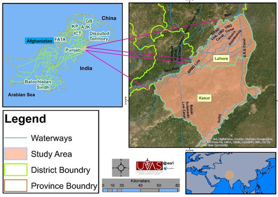 Map of the study area which consists of two districts (Lahore and Kasur).