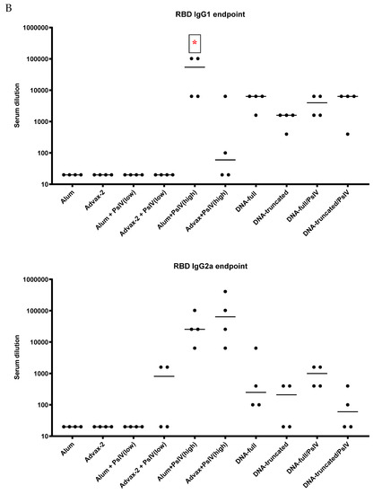 The following are available online at https://www.mdpi.com/article/10.3390/pathogens10050626/s1, Figure S1: Ratio of IgG2a to IgG1 endpoint titers to RBD. Each symbol represents one mouse and the horizontal line represents geometric mean value.