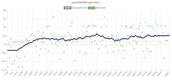 The 3D profile of PR1b using Verify_3D server; overall quality score indicates residues is reasonably folded.