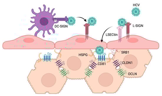 - Colpitts, C.C.; Tsai, P.-L.; Zeisel, M.B. Hepatitis C Virus Entry: An Intriguingly Complex and Highly Regulated Process. Int. J. Mol. Sci. 2020, 21, 2091. [Google Scholar] [CrossRef] [PubMed]