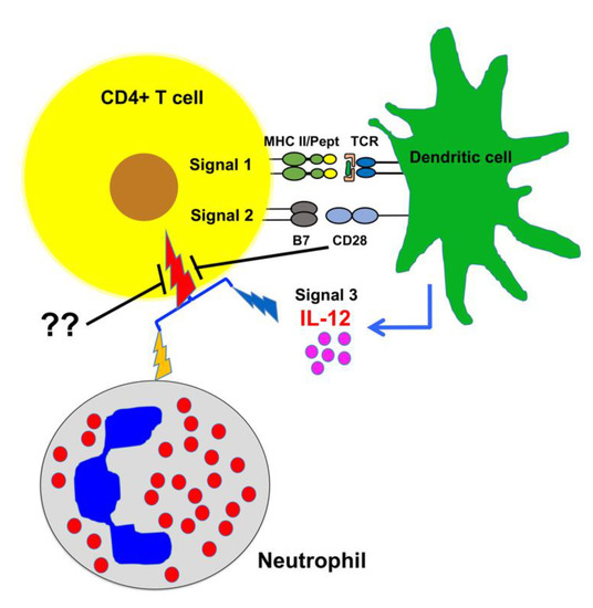 - Abdallah, D.S.A.; Egan, C.E.; Butcher, B.A.; Denkers, E.Y. Mouse neutrophils are professional antigen-presenting cells programmed to instruct Th1 and Th17 T-cell differentiation. Int. Immunol. 2011, 23, 317–326. [Google Scholar] [CrossRef] [PubMed]
