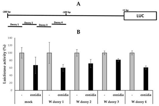 2.2. Use of Decoys to Inhibit Conidia-Mediated Suppression of the Promoter Activity