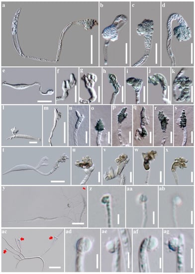 - Hyde, K.D.; de Silva, N.I.; Jeewon, R.; Bhat, D.J.; Phookamsak, R.; Doilom, M.; Boonmee, S.; Jayawardena, R.S.; Maharachchikumbura, S.S.N.; Senanayake, I.C.; et al. AJOM new records and collections of fungi: 1–100. Asian J. Mycol. 2020, 3, 22–294. [Google Scholar] [CrossRef]