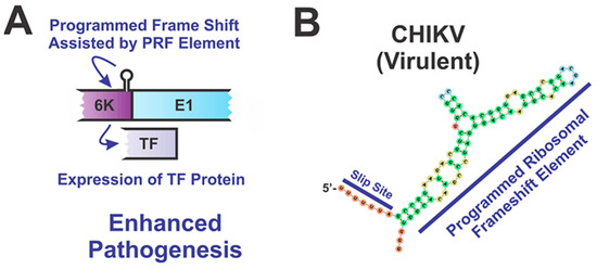 - Chung, B.Y.-W.; Firth, A.E.; Atkins, J. Frameshifting in Alphaviruses: A Diversity of 3′ Stimulatory Structures. J. Mol. Biol. 2010, 397, 448–456. [Google Scholar] [CrossRef]