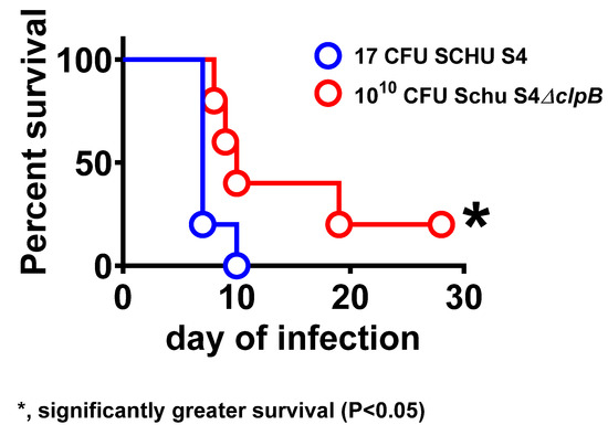 2.1. Studies Supporting Attenuation and Removal of SCHU S4 ΔclpB from the U.S. Select Agent List