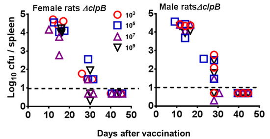 2.2. Clearance of ΔclpB from Fischer Rat Tissues