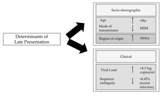 - Darling, K.E.; Hachfeld, A.; Cavassini, M.; Kirk, O.; Furrer, H.; Wandeler, G. Late presentation to HIV care despite good access to health services: Current epidemiological trends and how to do better. Swiss Med. Wkly. 2016, 146, 14348. [Google Scholar] [CrossRef]