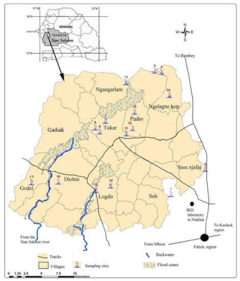 - ANSD. Situation Économique et Sociale de La Région de Fatick. ANSD/SRSD Fatick: Situation Economique et Sociale Régionale. 2013. Available online: http://www.ansd.sn/ressources/ses/SES-Fatick-2013.pdf (accessed on 21 May 2021).
