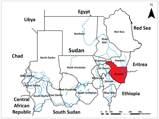Map of Sudan shows the study site: Gedaref state is highlighted in red.