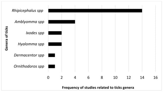 On the American continent, the most prevalent tick genera in modeling were Ixodes spp. With 35% followed closely by Amblyomma spp. (33%). The least prevalent genera in distribution modeling were Hyalomma spp. And Ornithodoros spp.