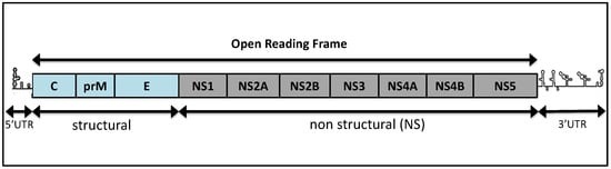 - Lindenbach, B.D.; Rice, C.M. Molecular biology of flaviviruses. Adv. Virus Res. 2003, 59, 23–61. [Google Scholar]