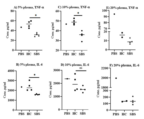 2.1. Anti-Inflammatory Effect of Plasma from SBS and Healthy Subjects In Vitro