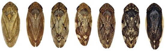 - Stöckmann, M.; Biedermann, R.; Nickel, H.; Niedringhaus, R. The Nymphs of the Planthoppers and Leafhoppers of Germany; WABW Fründ: Bremen, Germany, 2013. [Google Scholar]