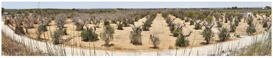 Panoramic view of an olive orchard Xylella-infected near Gallipoli (Apulia, Italy).