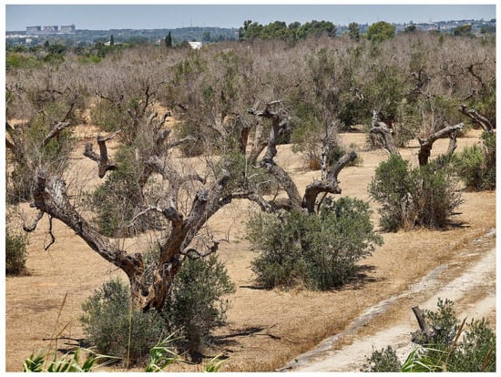 - Almeida, R.P. Can Apulia’s olive trees be saved? Science 2016, 353, 346–348. [Google Scholar] [CrossRef]