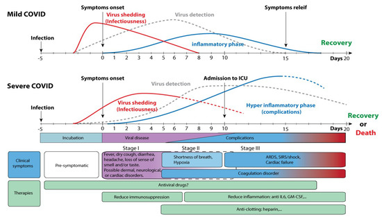 Timeline for SARS-CoV-2 shedding and detection (adapted from [173]).