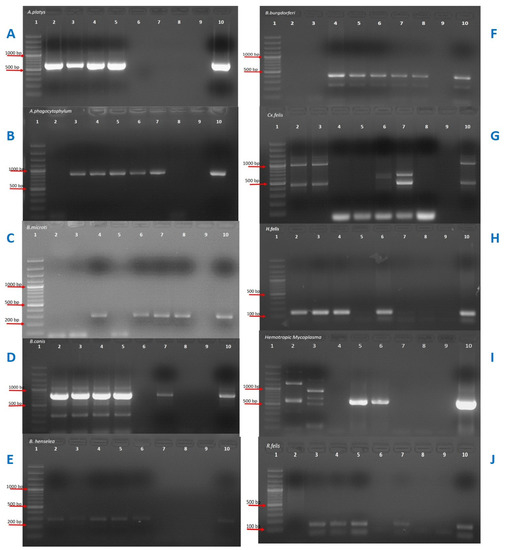 - Gutiérrez, R.; Morick, D.; Gross, I.; Winkler, R.; Abdeen, Z.; Harrus, S. Bartonellae in domestic and stray cats from Israel: Comparison of bacterial cultures and high-resolution melt real-time PCR as diagnostic methods. Vector Borne Zoonotic Dis. 2013, 13, 857–864. [Google Scholar] [CrossRef]