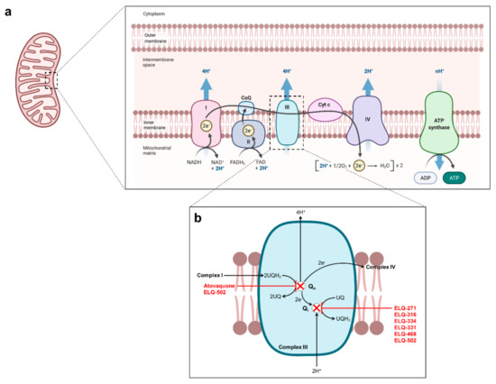 - Birth, D.; Kao, W.C.; Hunte, C. Structural analysis of atovaquone-inhibited cytochrome bc(1) complex reveals the molecular basis of antimalarial drug action. Nat. Commun. 2014, 5, 11. [Google Scholar] [CrossRef]