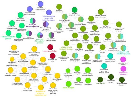 - Bindea, G.; Mlecnik, B.; Hackl, H.; Charoentong, P.; Tosolini, M.; Kirilovsky, A.; Fridman, W.-H.; Pagès, F.; Trajanoski, Z.; Galon, J. ClueGO: A Cytoscape plug-in to decipher functionally grouped gene ontology and pathway annotation networks. Bioinformatics 2009, 25, 1091–1093. [Google Scholar] [CrossRef]