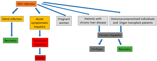 Pathogenesis of HEV differs between general, pregnant, and immunocompromised individuals (Figure 4).