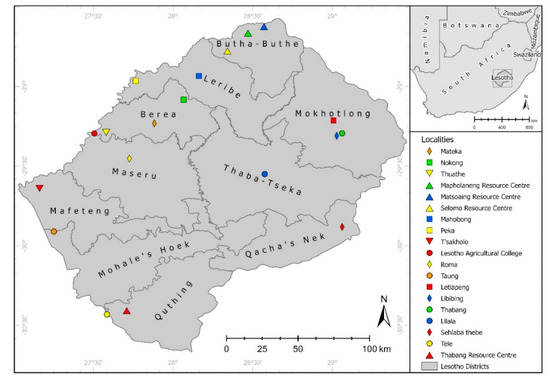 Map of Lesotho. Study area including the ten districts where sampling was carried out.