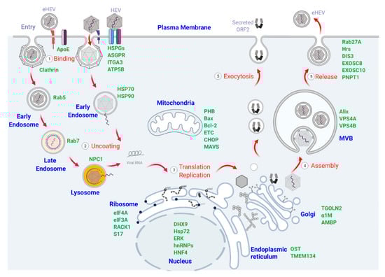 2. Cellular Organelles and Proteins Participating in HEV Binding, Entry, and Uncoating