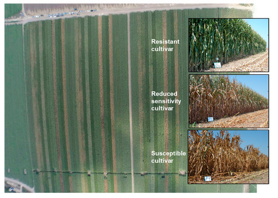 - Ortiz-Bustos, C.M.; Testi, L.; García-Carneros, A.B.; Molinero-Ruiz, L. Geographic distribution and aggressiveness of Harpophora maydis in the Iberian peninsula, and thermal detection of maize late wilt. Eur. J. Plant Pathol. 2015, 144, 383–397. [Google Scholar] [CrossRef]