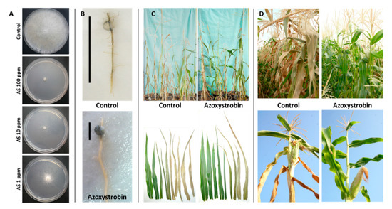 - Degani, O.; Movshowitz, D.; Dor, S.; Meerson, A.; Goldblat, Y.; Rabinovitz, O. Evaluating Azoxystrobin Seed Coating Against Maize Late Wilt Disease Using a Sensitive qPCR-Based Method. Plant Dis. 2019, 103, 238–248. [Google Scholar] [CrossRef]