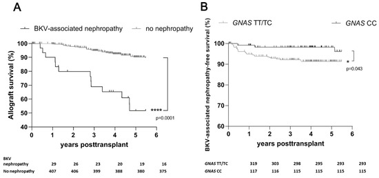 3.3. GNAS C393T CC Genotype Is a Protective Factor against BKV-Associated Nephropathy