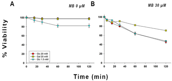 2.2. Epimastigotes Supplemented with Galactose Showed Higher Resistance against Oxidative Stress Produced by Methylene Blue as Compared to Those Grown with Glucose and Those Grown in the Absence of Glucose