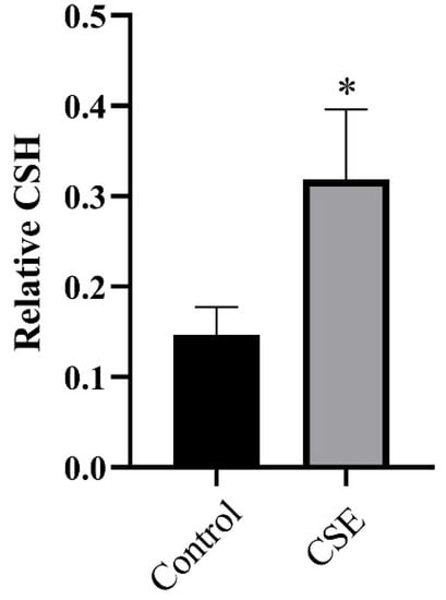 Adherence and morphogenesis are two crucial stages in the C. albicans biofilm development process [19], the first of which is positively associated with cell surface hydrophobicity (CSH) [20]. Therefore, we performed a water–hydrocarbon two-phase assay to evaluate the CSH of C. albicans. We found the CSH to be 0.147 in the control group and 0.319 in the CSE treated group (Figure 4), indicating that CSE increased the CSH of C. albicans.