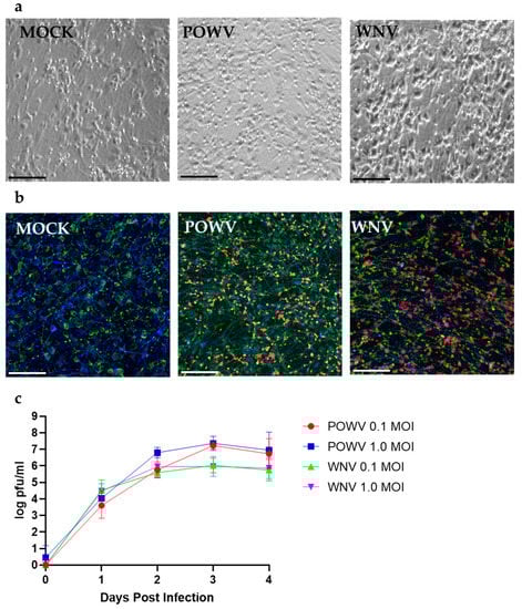 Viruses were provided by the World Reference Center for Emerging Viruses and Arboviruses (WRCEVA) at the University of Texas Medical Branch. The strain of POWV used was the progenitor type 1 strain, LB; while the strain of WNV used was WNV/NY/99.