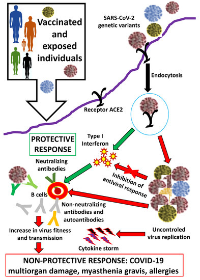 Impact of SARS-CoV-2 genetic variants on individual´s protective responses to coronavirus infection and vaccination and non-protective responses associated with COVID-19 prevalence and severity.
