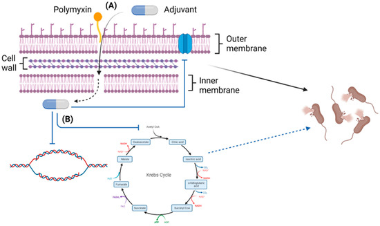 - Liu, Y.; Li, R.; Xiao, X.; Wang, Z. Antibiotic adjuvants: An alternative approach to overcome multi-drug resistant Gram-negative bacteria. Crit. Rev. Microbiol. 2019, 45, 301–314. [Google Scholar] [CrossRef]