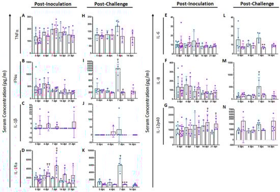 - Wang, S.; Zhang, J.; Zhang, Y.; Yang, J.; Wang, L.; Qi, Y.; Han, X.; Zhou, X.; Miao, F.; Chen, T.; et al. Cytokine Storm in Domestic Pigs Induced by Infection of Virulent African Swine Fever Virus. Front. Vet. Sci. 2021, 7, 601641. [Google Scholar] [CrossRef]