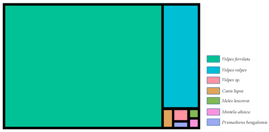 - Wang, Z.; Wang, X.; Lu, Q. Selection of land cover by the Tibetan fox Vulpes ferrilata on the eastern Tibetan Plateau, western Sichuan Province, China. Acta Theriol. 2007, 52, 215–223. [Google Scholar] [CrossRef]