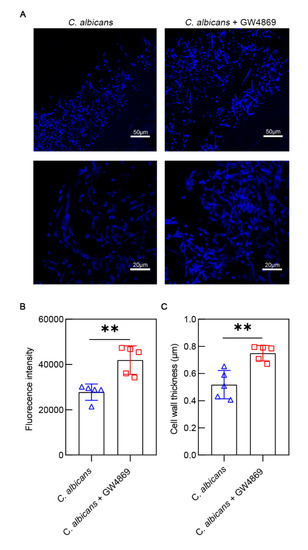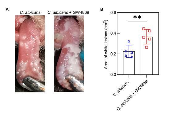 3.3. GW4869 Increased the Invasion of C. albicans into Mucosal Epithelium