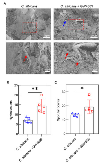 APA StyleZhang, M., Li, R., Zhou, Y., Xie, R., Ma, J., Liu, H., Qin, Y., Zhao, M., Duan, N., Ye, P., Wang, W., & Wang, X. (2022). The Promotional Effect of GW4869 on C. albicans Invasion and Cellular Damage in a Murine Model of Oral Candidiasis. Pathogens, 11(12), 1522. https://doi.org/10.3390/pathogens11121522