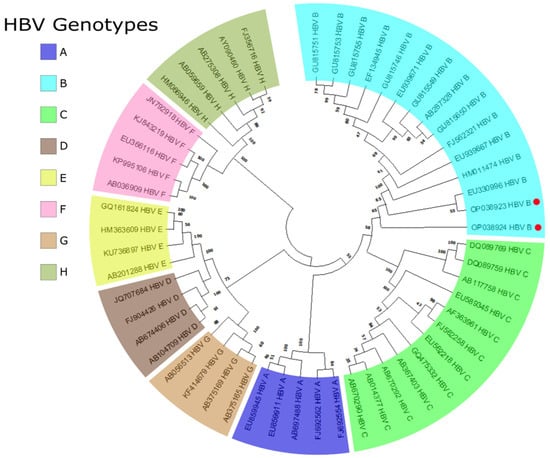 The following supporting information can be downloaded at: https://www.mdpi.com/article/10.3390/pathogens11121524/s1, Table S1: Primer sequences for HBV genotyping; Table S2: MEGA11 calculated parameter model for phylogenetic tree construction.