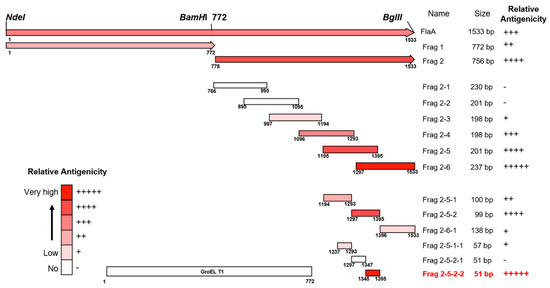 - Yan, J.; Liang, S.H.; Mao, Y.F.; Li, L.W.; Li, S.P. Construction of expression systems for flaA and flaB genes of Helicobacter pylori and determination of immunoreactivity and antigenicity of recombinant proteins. World J. Gastroenterol. 2003, 9, 2240–2250. [Google Scholar] [CrossRef]