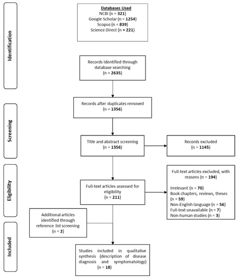 Four key databases were accessed: Scopus, Science Direct, Google Scholar and The National Center for Biotechnology Information (NCBI). The search criteria narrowly focused on Vahlkampfia, Vermamoeba (Hartmannella) and Vannella sp. and their involvement in keratitis. No date restrictions were applied due to the elusive nature of non-Acanthamoeba amoebic infections and the scarcity of relevant literature. Key words combined with Boolean operators and nested search strings were used to ensure results were confined to the topic of interest. Figure 1 details the flow path by which studies of non-Acanthamoeba amoebic keratitis infections were identified. All reported cases of keratitis associated with Vahlkampfia and Vermamoeba vermiformis (Hartmannella), coupled with descriptions of symptomatology and diagnostic measures, were included in this review. No restrictions to publication date, country, patient gender, race or age were applied. Studies selected for inclusion in this review were analysed against a Scottish Intercollegiate Guidelines Network flowchart [31], as recommended by the University of Strathclyde [32], to accurately determine study type. All studies were established to be case reports (CR) or case series (CS). Thereafter, each paper was quality-assessed against two critical appraisal tools provided by The Joanna Briggs Institute [33] and the Centre for Evidence-Based Management [34]. Data were presented as both total counts and percentages of overall data.