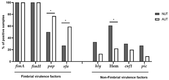 - Yamamoto, S.; Terai, A.; Yuri, K.; Kurazono, H.; Takeda, Y.; Yoshida, O. Detection of urovirulence factors in Escherichia coli by multiplex polymerase chain reaction. FEMS Immun. Med. Microbiol. 1995, 12, 85–90. [Google Scholar] [CrossRef]