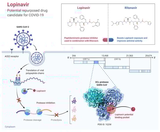 The mechanisms of action of lopinavir against coronaviruses. (Created with BioRender.com, accessed on 10 January 2022).